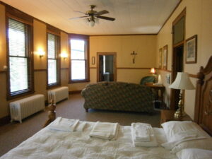 Alternatively, we have 5 standard (regular) rooms that include a sink and mirror and 12 suites which include a full bathroom. Suites are limited and are assigned in the order that a request is received. Suites may not be available during very busy times. Lodging can be requested in the original 1919 wing of our building or in the “new” 1964 addition.